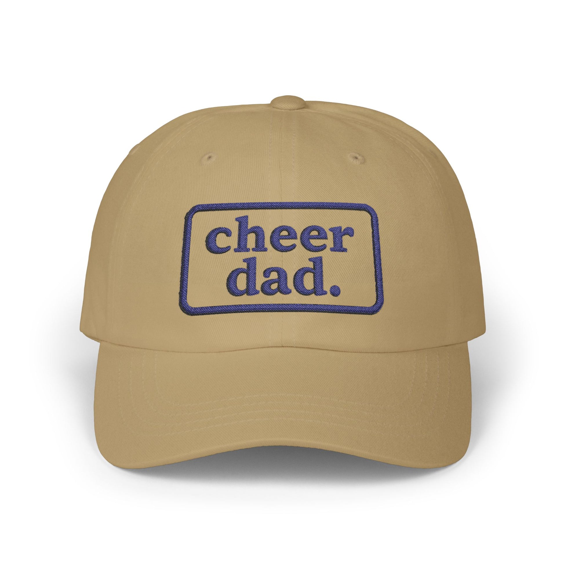This classic dad cap combines everyday comfort with a bold embroidered cheer dad. front design that’s built to last. Clean, simple, and confident — just like the dads holding it down in the stands every weekend.